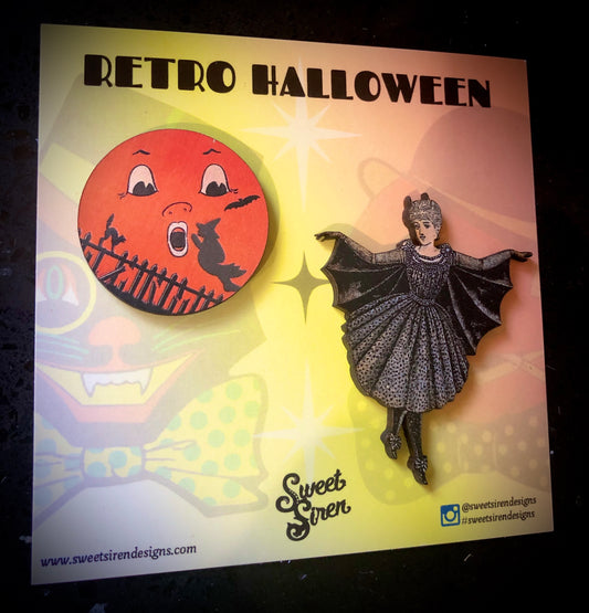 Victorian Bat Wing and Frightened Moon - PIN SET