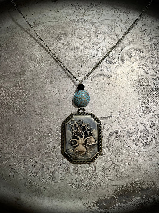 Antiqued Kraken & Ship Beaded Cameo Necklace