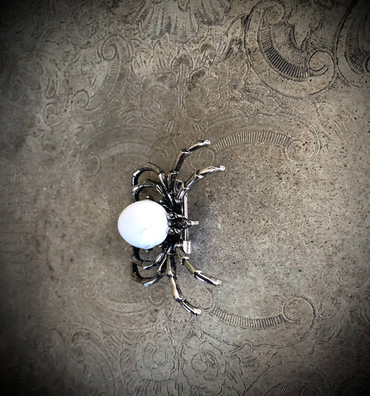 Sold outWhite Howlite Spider Brooch