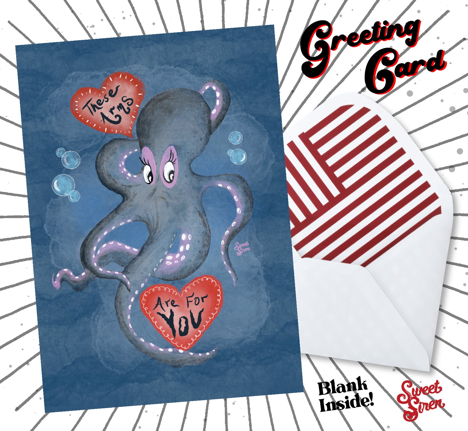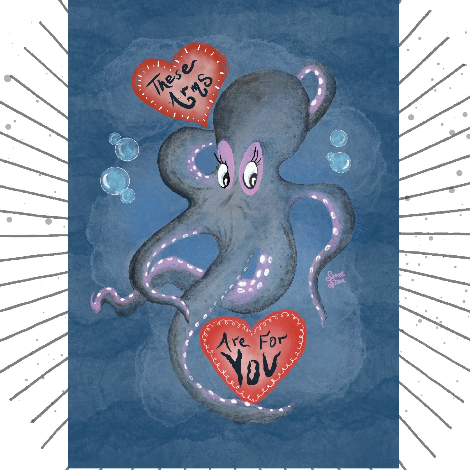 These Arms are for YOU. A cute Octopus Valentine, or anytime card for anyone you'd like to hug.