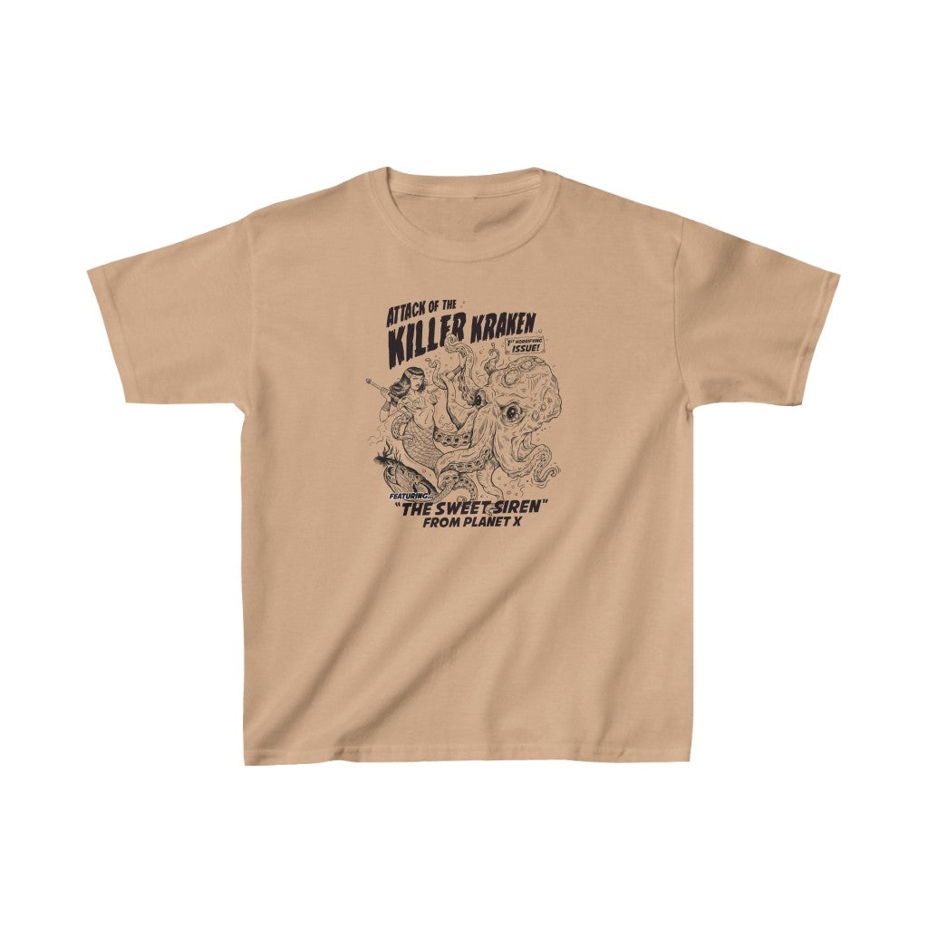 The kids heavy cotton tee is perfect for everyday use. The fabric is 100% cotton for solid colors. Polyester is included for heather-color variants. The shoulders have twill tape for improved durability. The collar is curl resistant due to ribbed knitting. There are no seams along the sides.