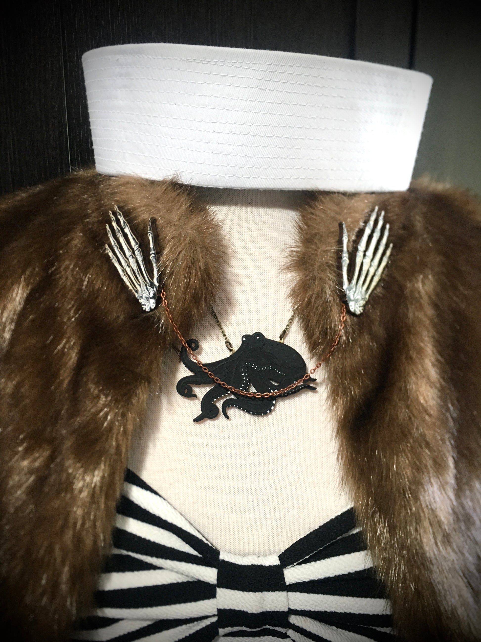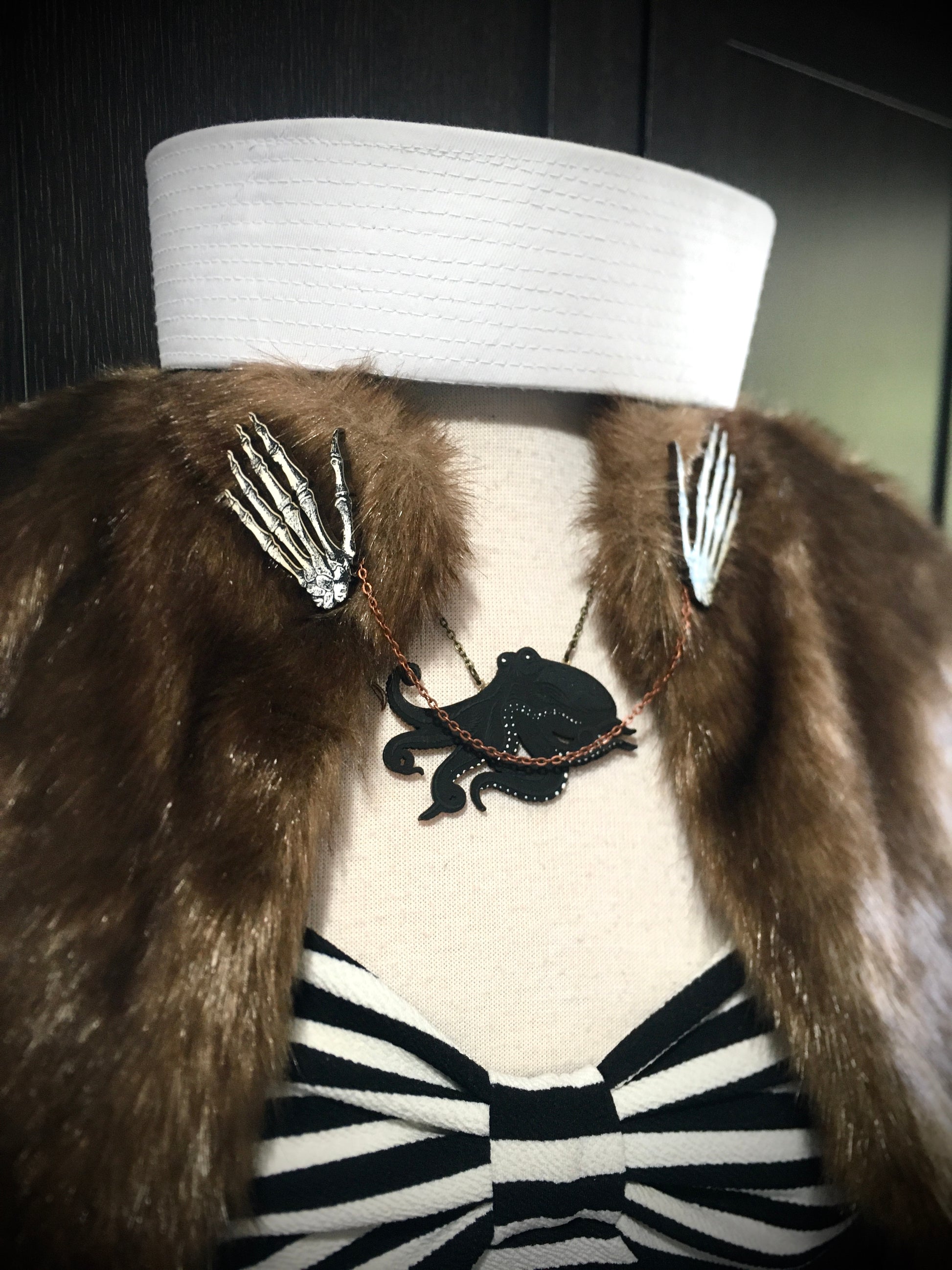 In some of the photos the necklace is paired with the Skeleton Hand collar pins- which you can find in our other listings in this collection. They make a great combo!