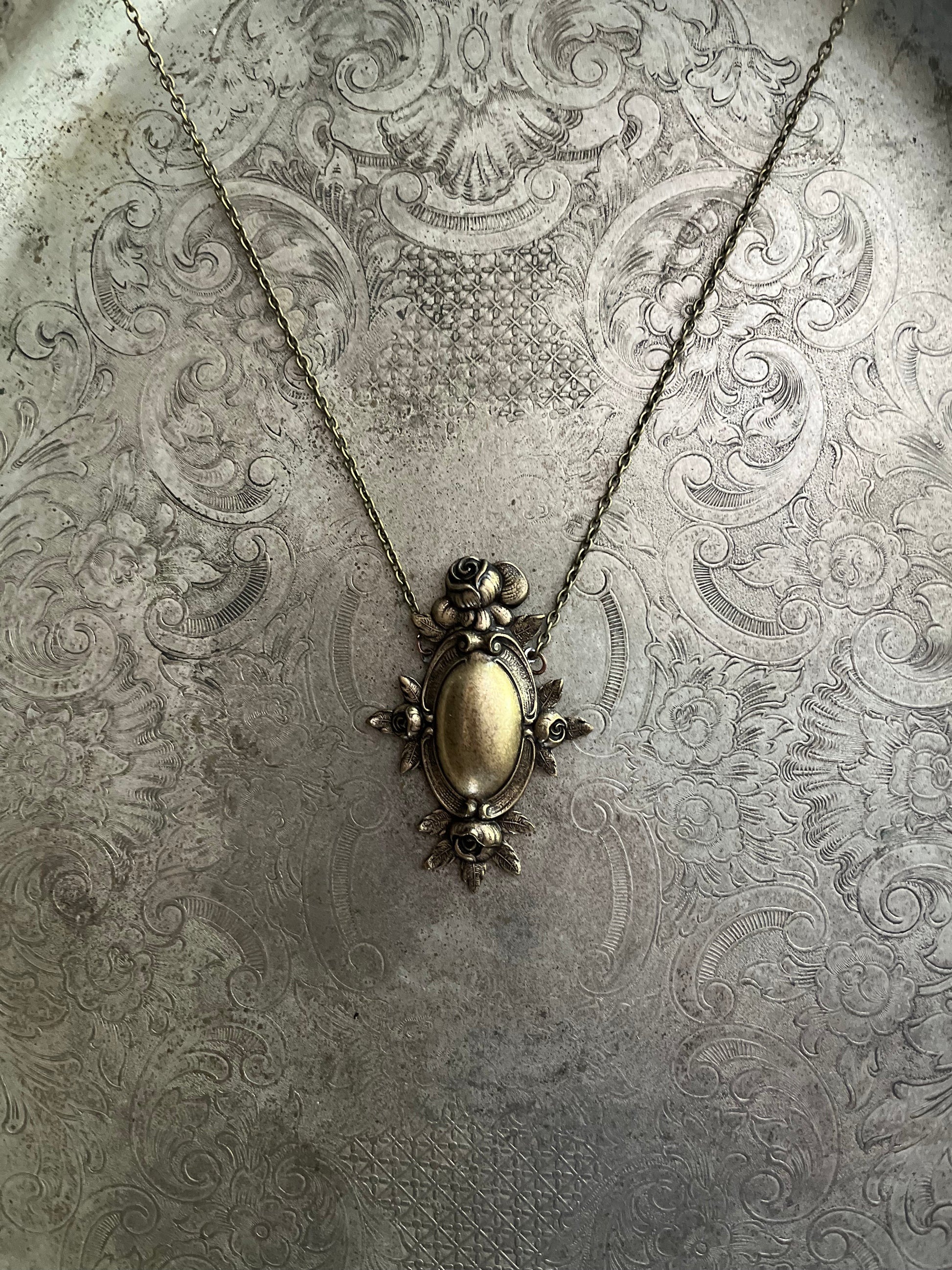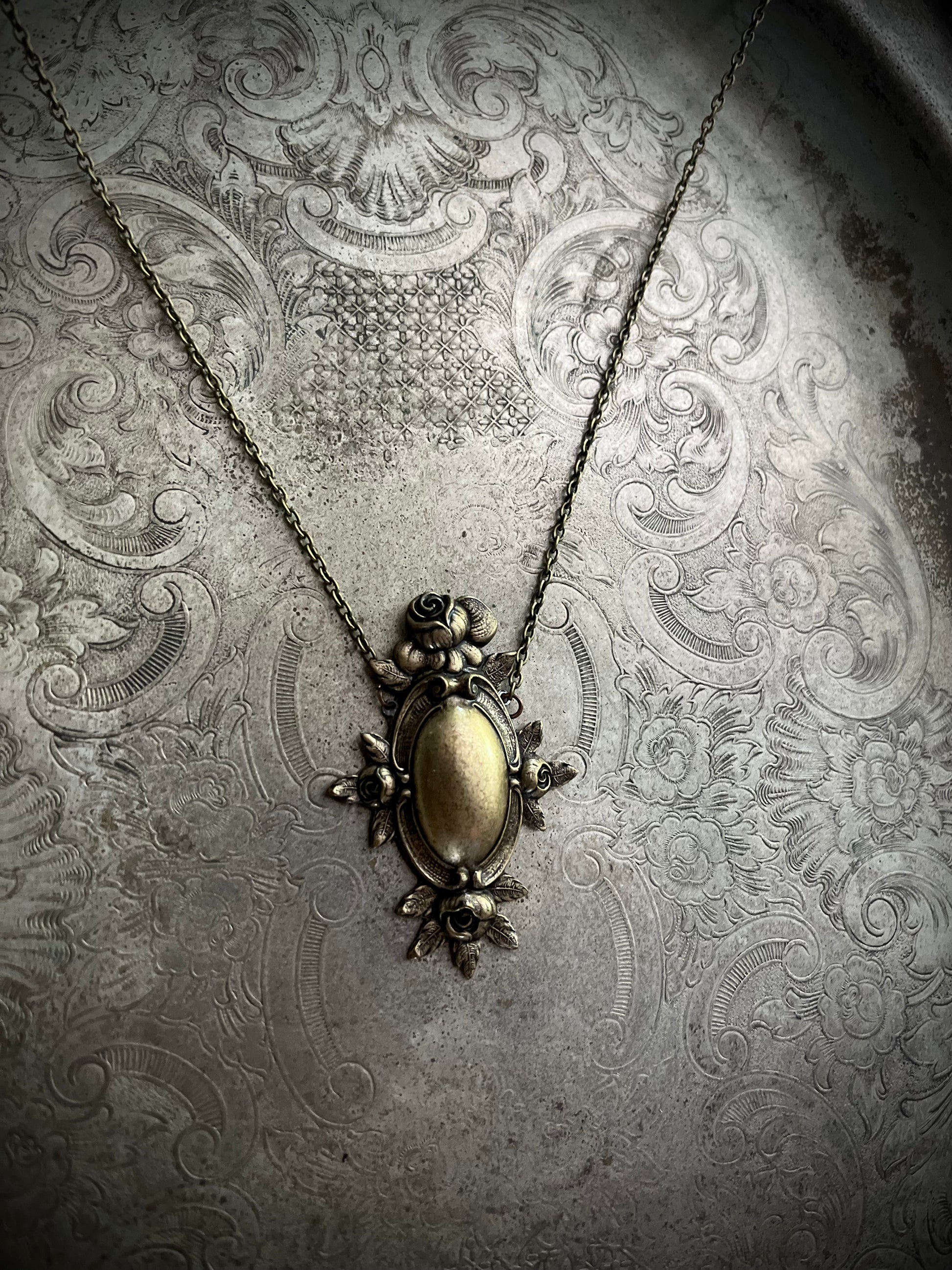 Brass Rose Frame Necklace