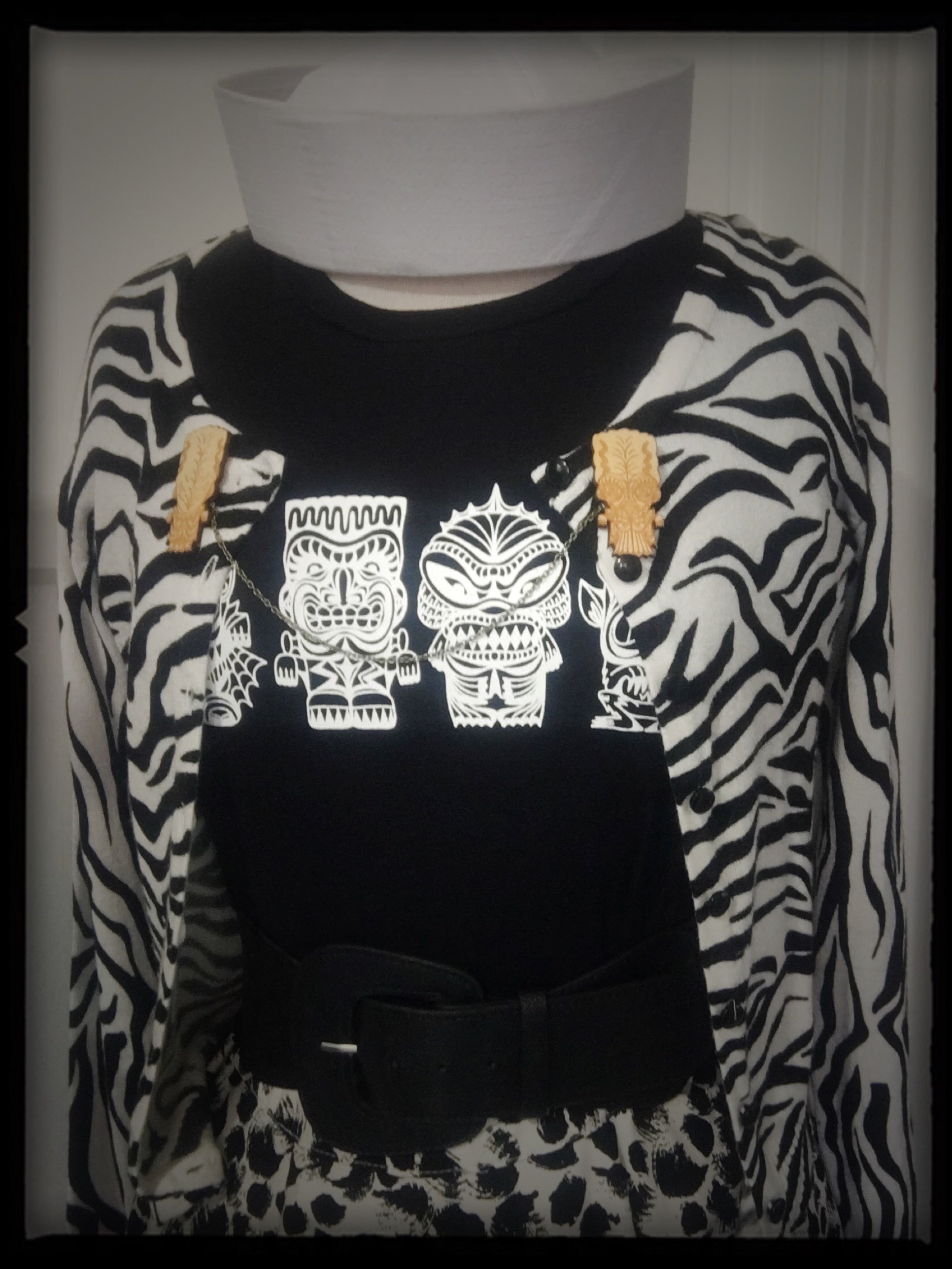 Bride of the Frankenstein Monster Tiki Collar-Sweater Pin Set