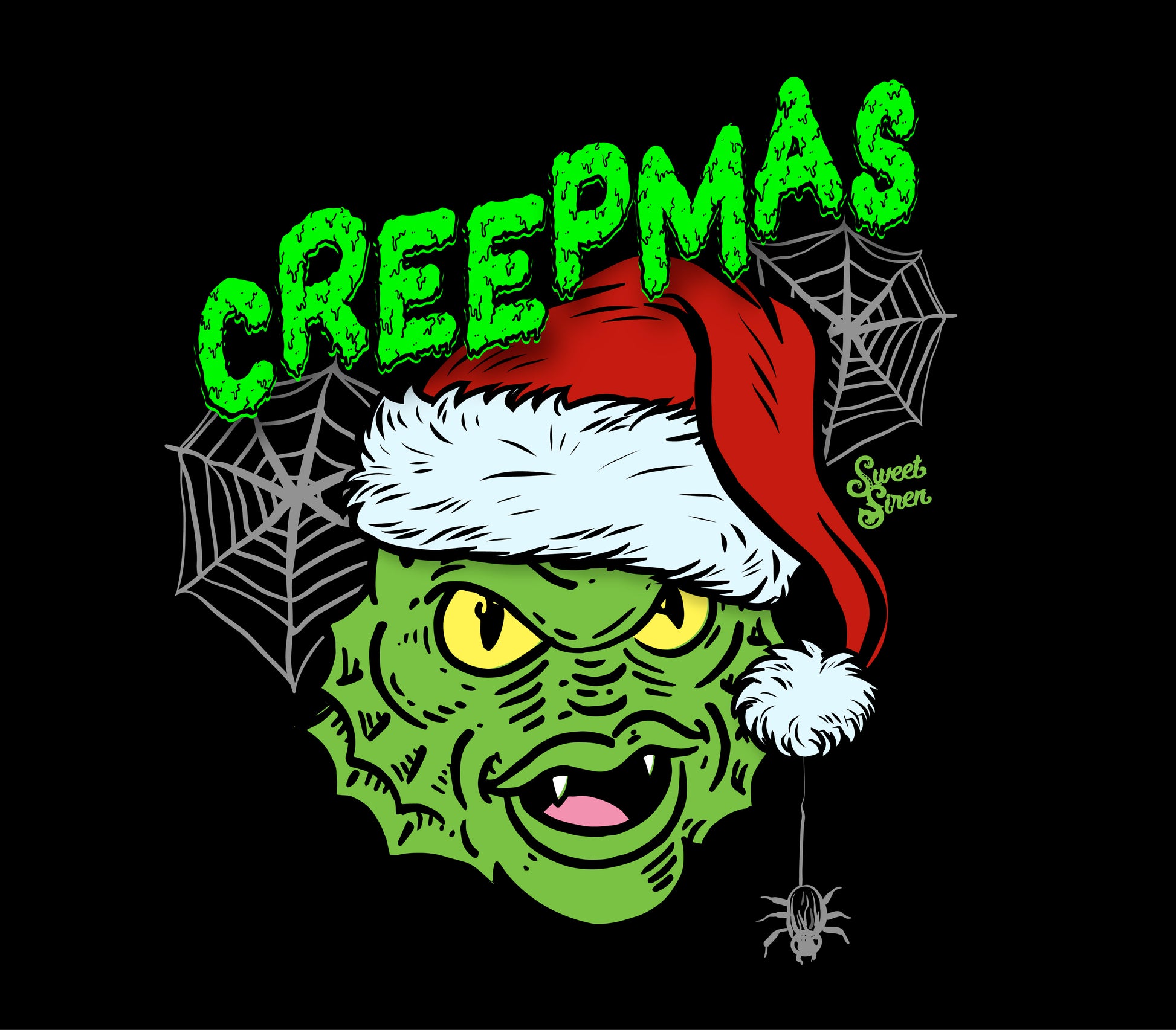 This design of the beloved Gillman is from another very popular tattoo style sailor design we have in the shop, but now our swamp friend is playing Santa in this Creepmas design!