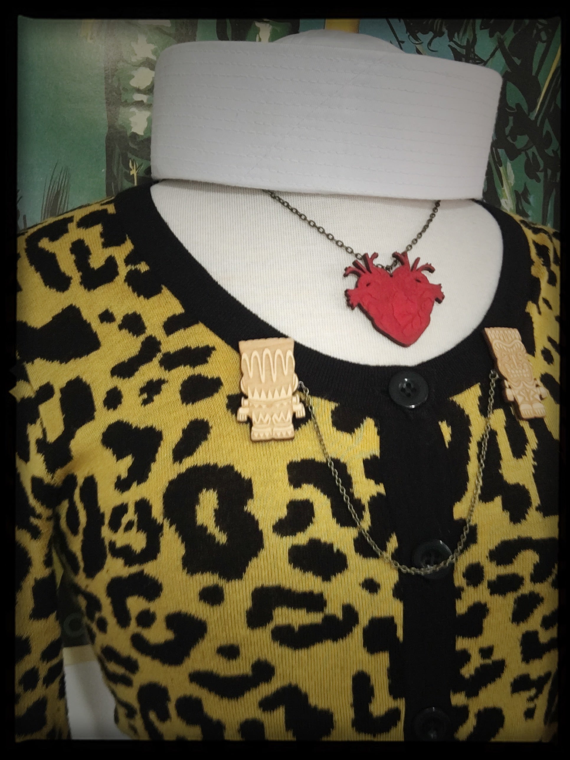 Frankenstein Monster Tiki Collar-Sweater Pin Set