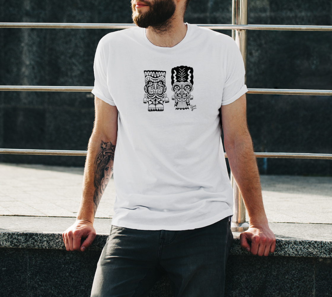 Franky & Bride Tiki Monsters - Black Ink - Unisex tee