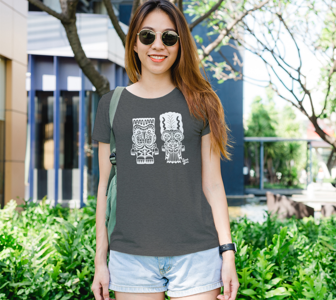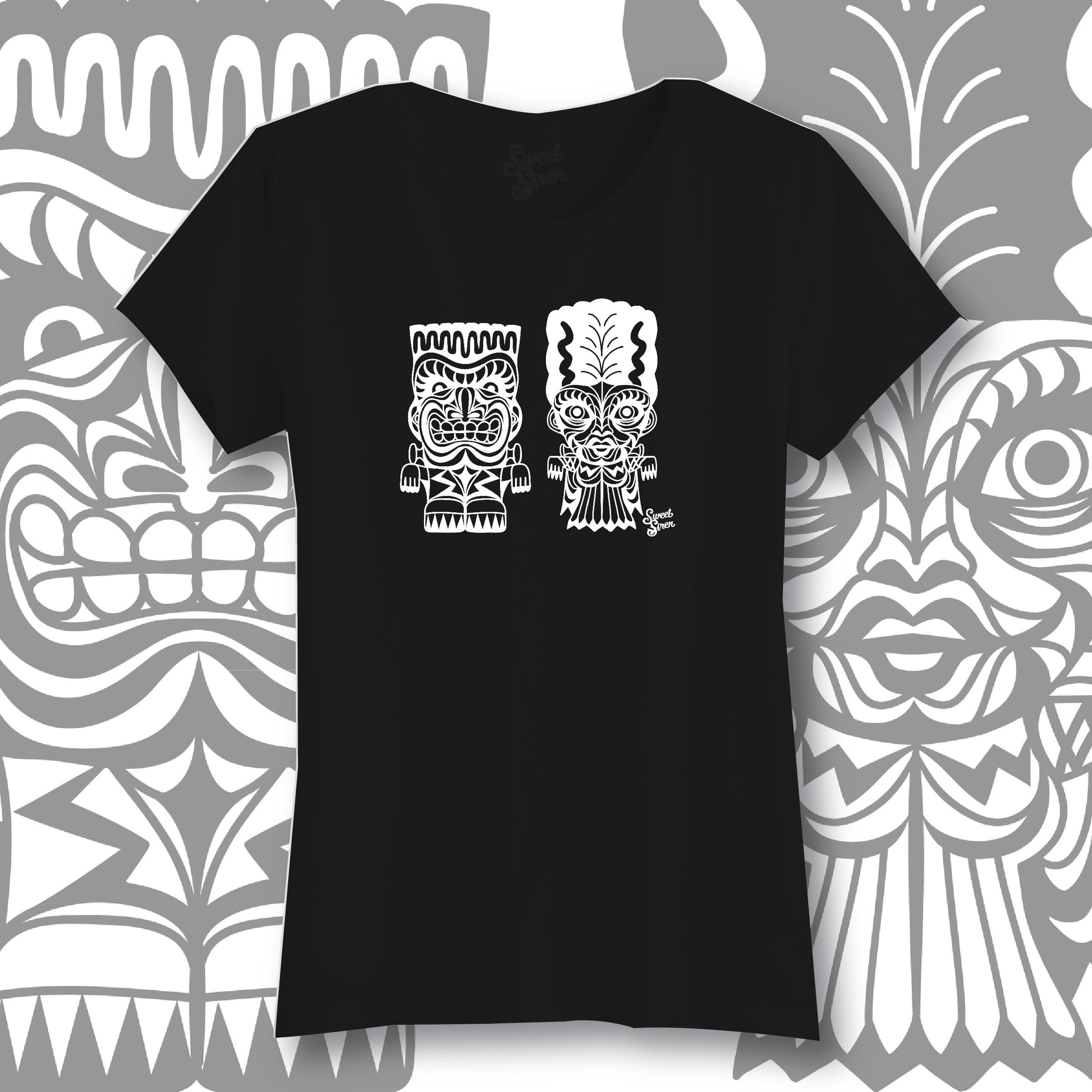 Franky & Bride Tiki Monsters - Womens tee - White Ink