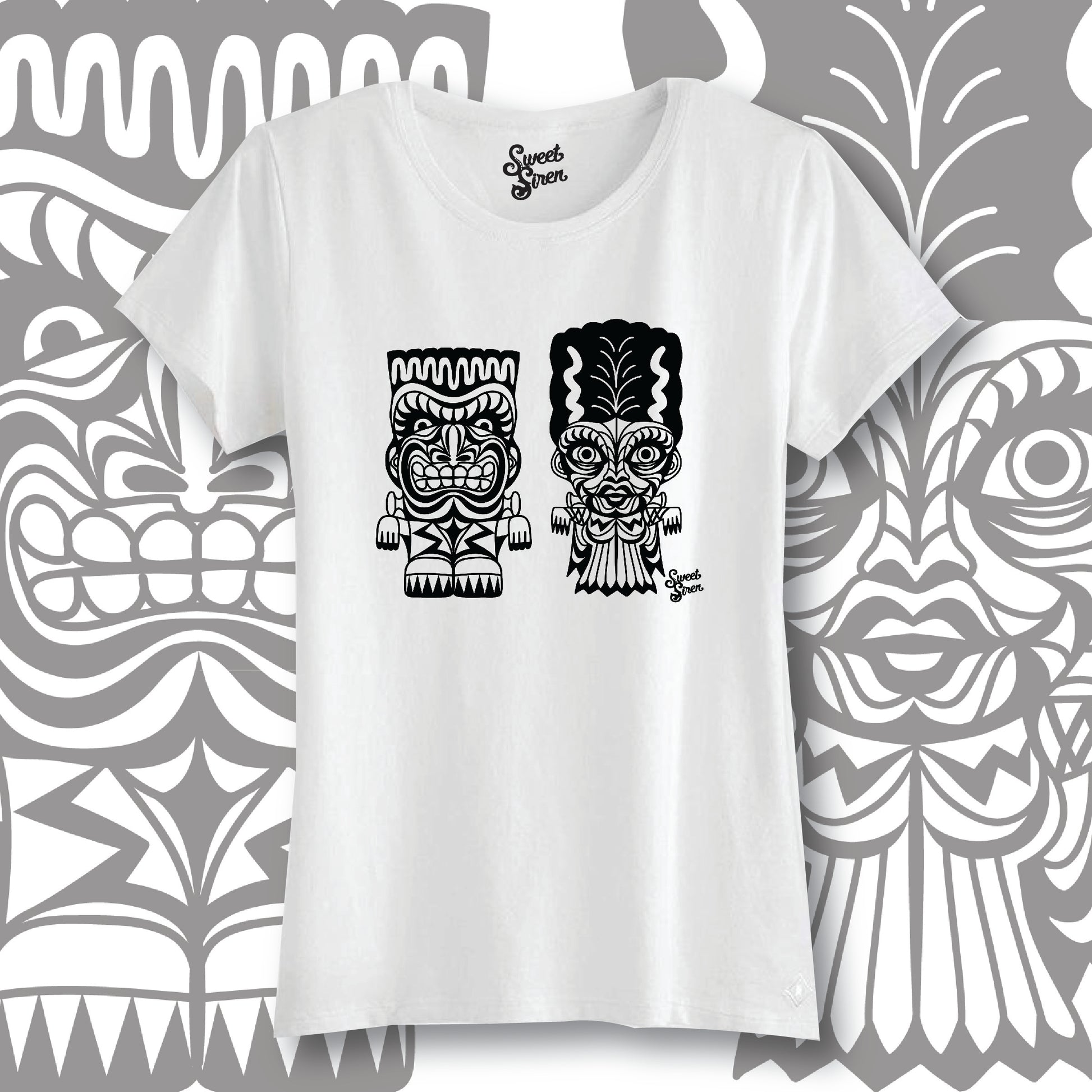 Franky & Bride Tiki Monsters - Black ink - Womens tee