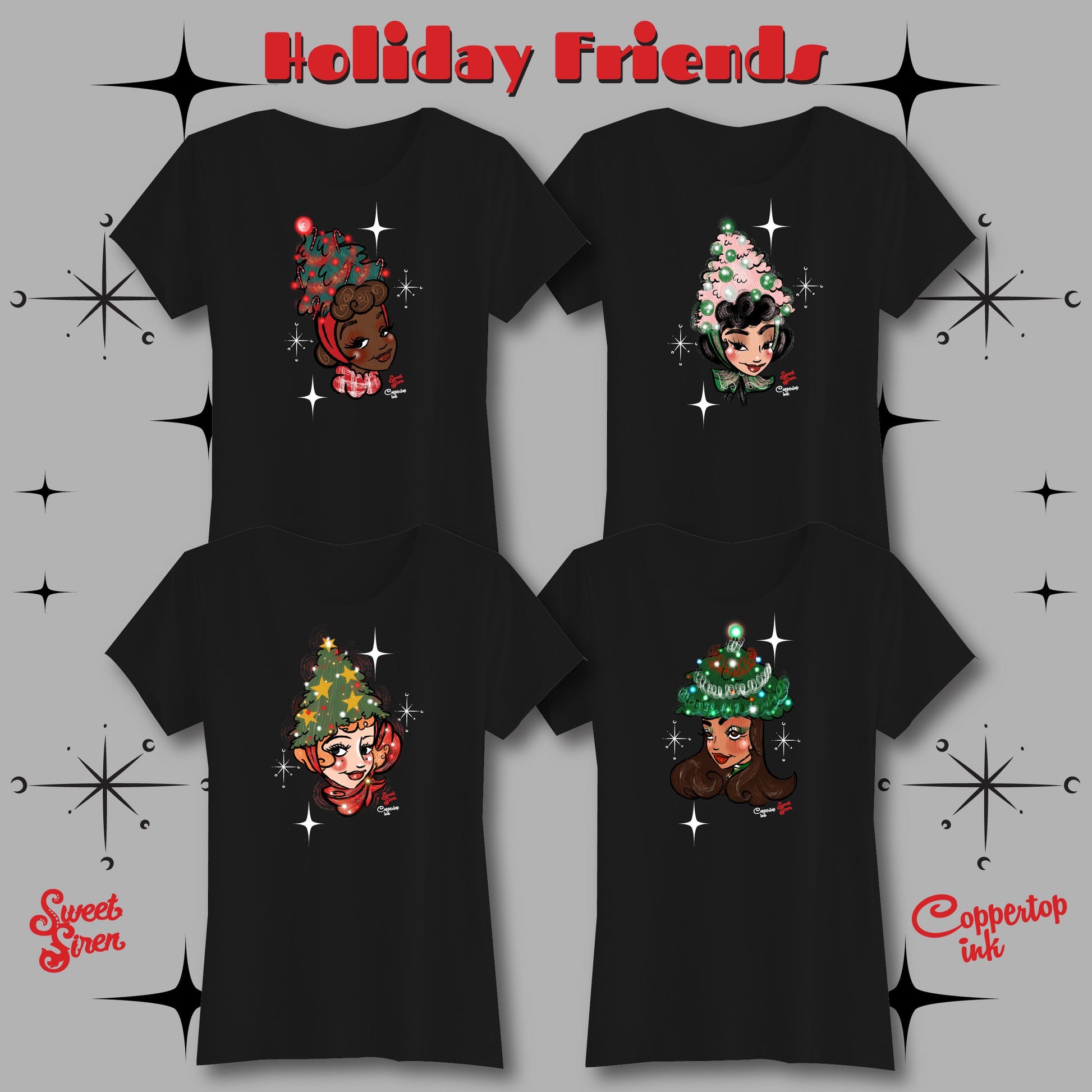 “Holiday Friends”, a collaboration design with Sweet Siren Designs & Copper Top Ink, filled with retro nostalgia and diversity. Based on holiday vintage cards from the Mid Century, this is a new take on the tree topper hats.