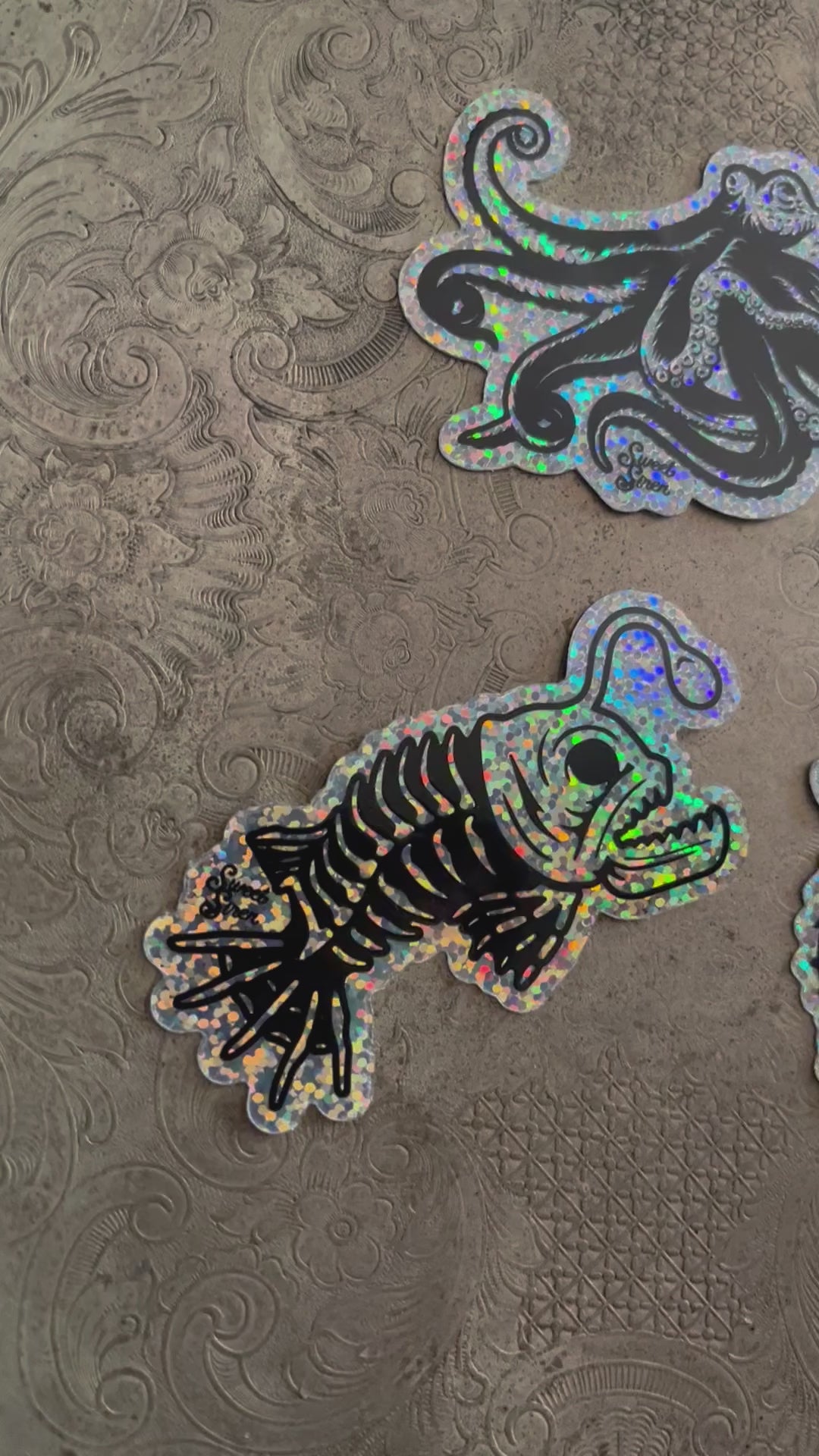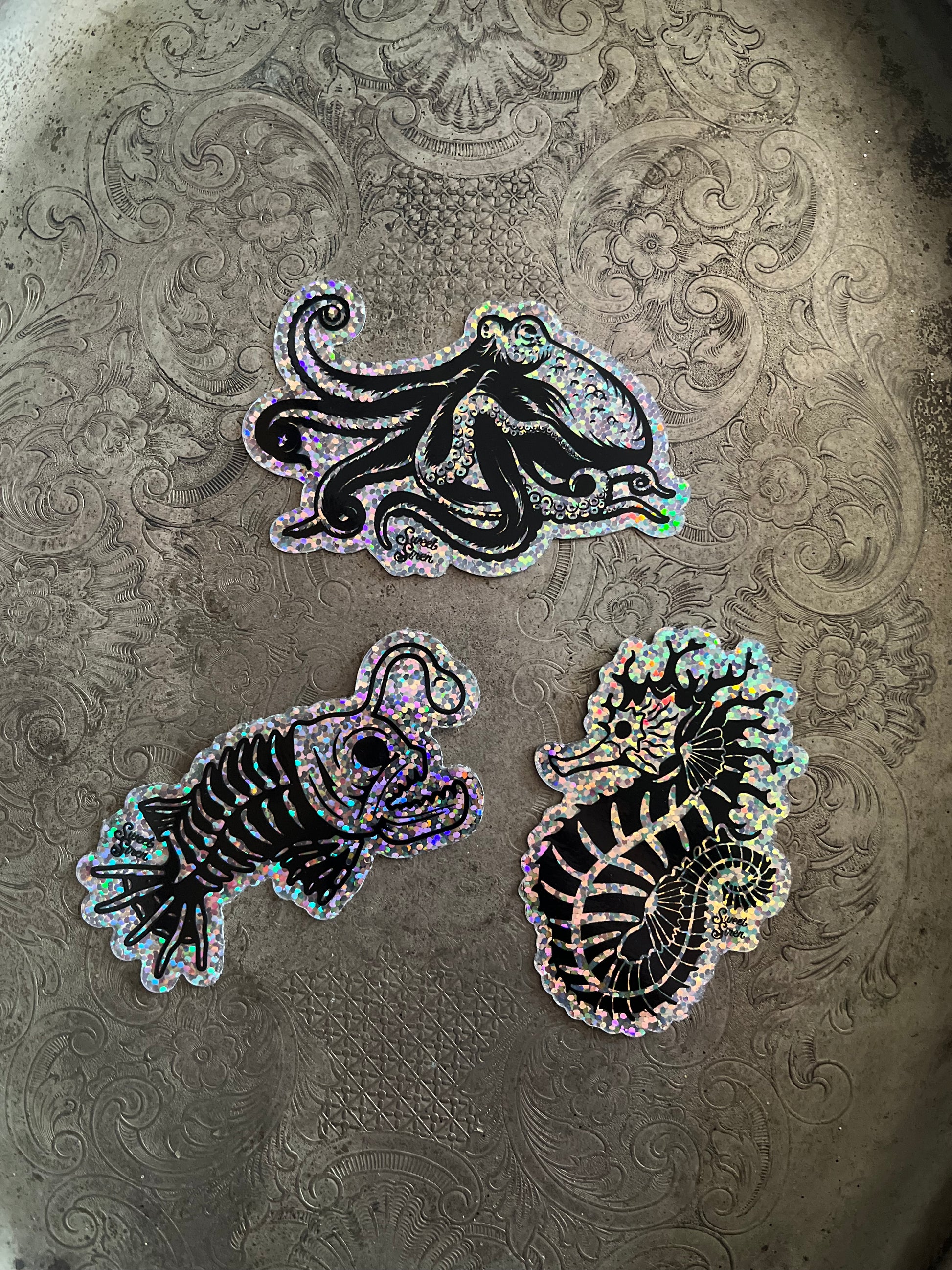 3 of our gorgeous Sea Creature designs in a holographic iridescent sticker set.