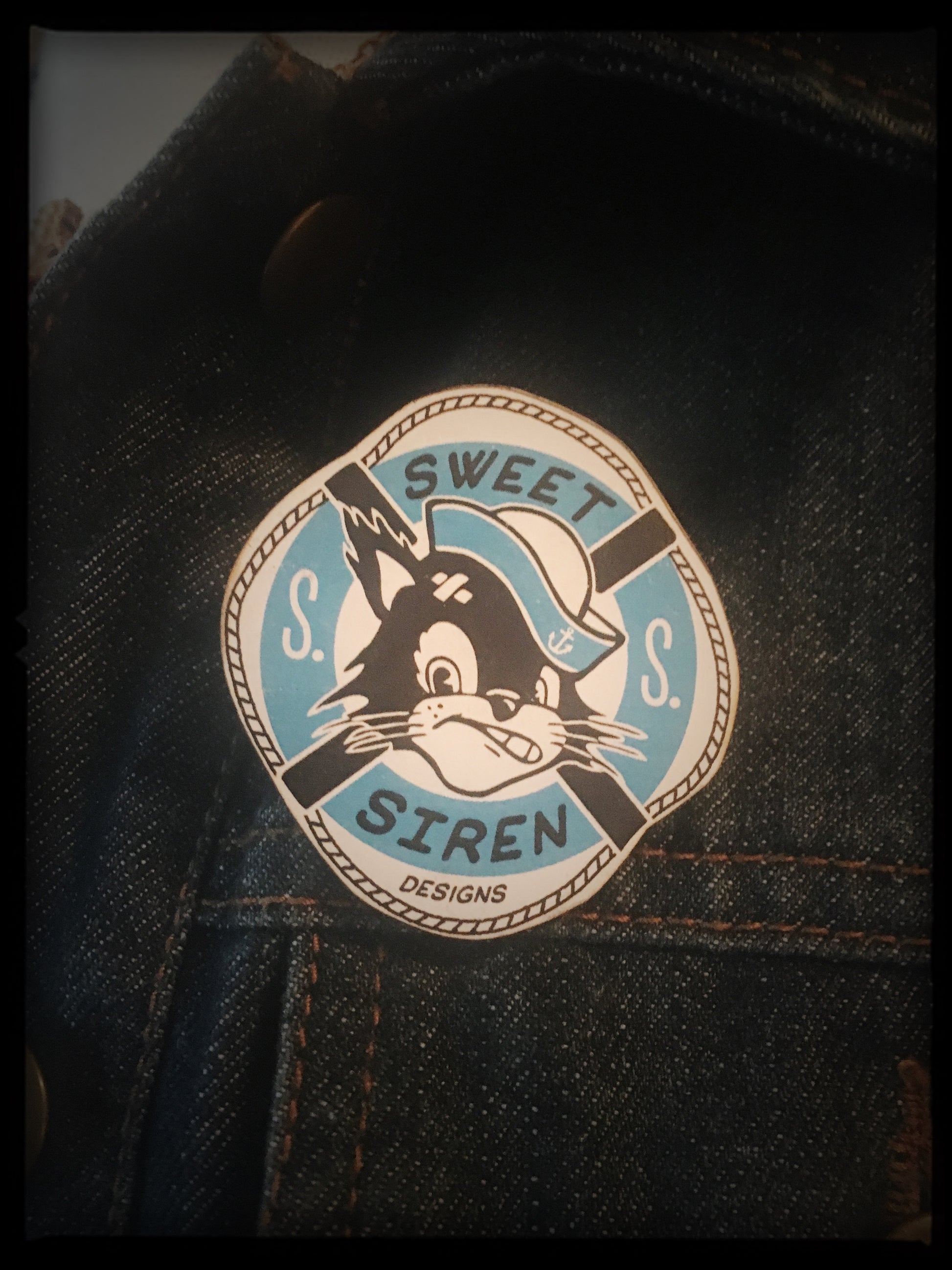 The Lifesaver Sailor Cat wooden pin - printed paper on wood design.