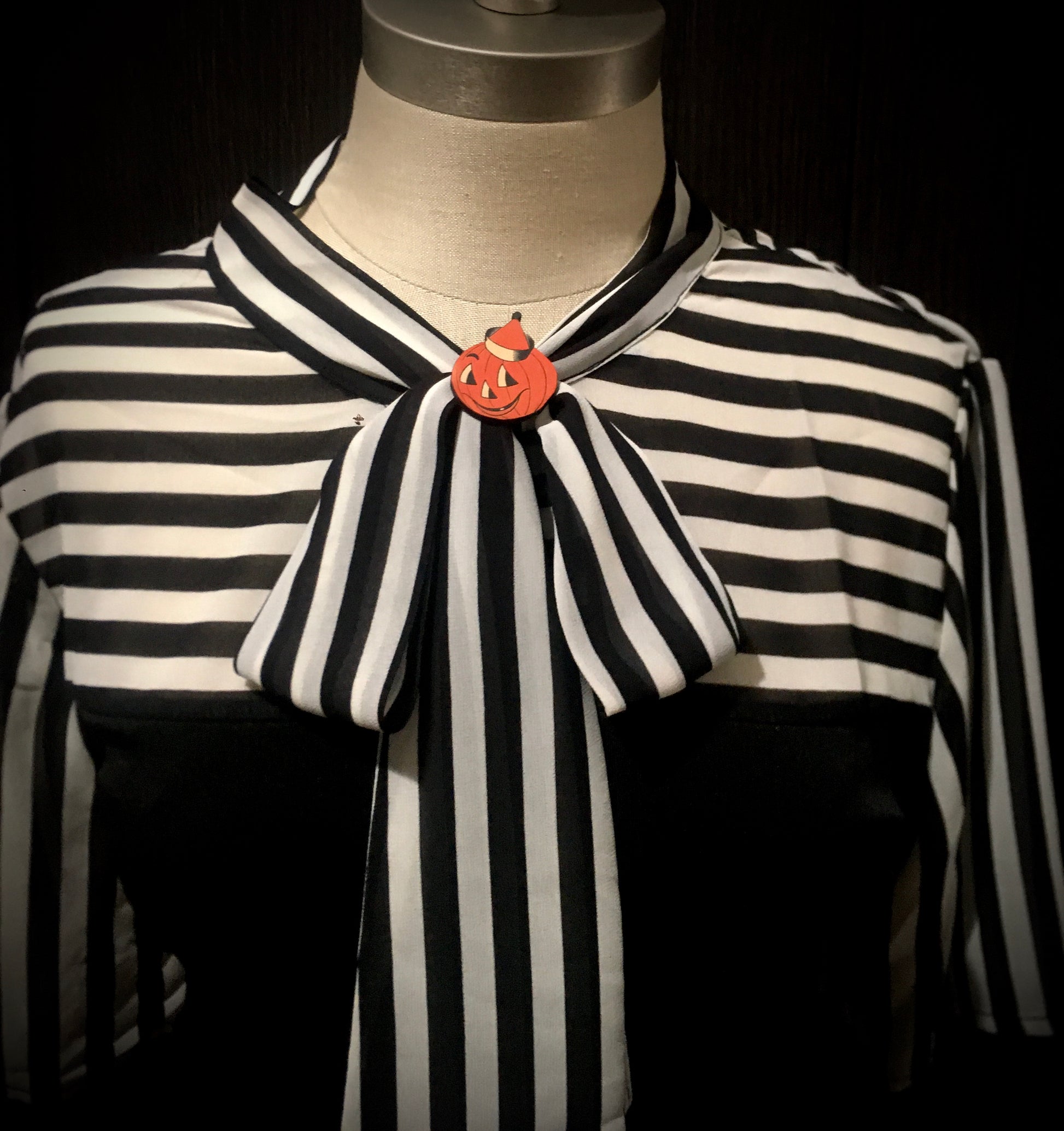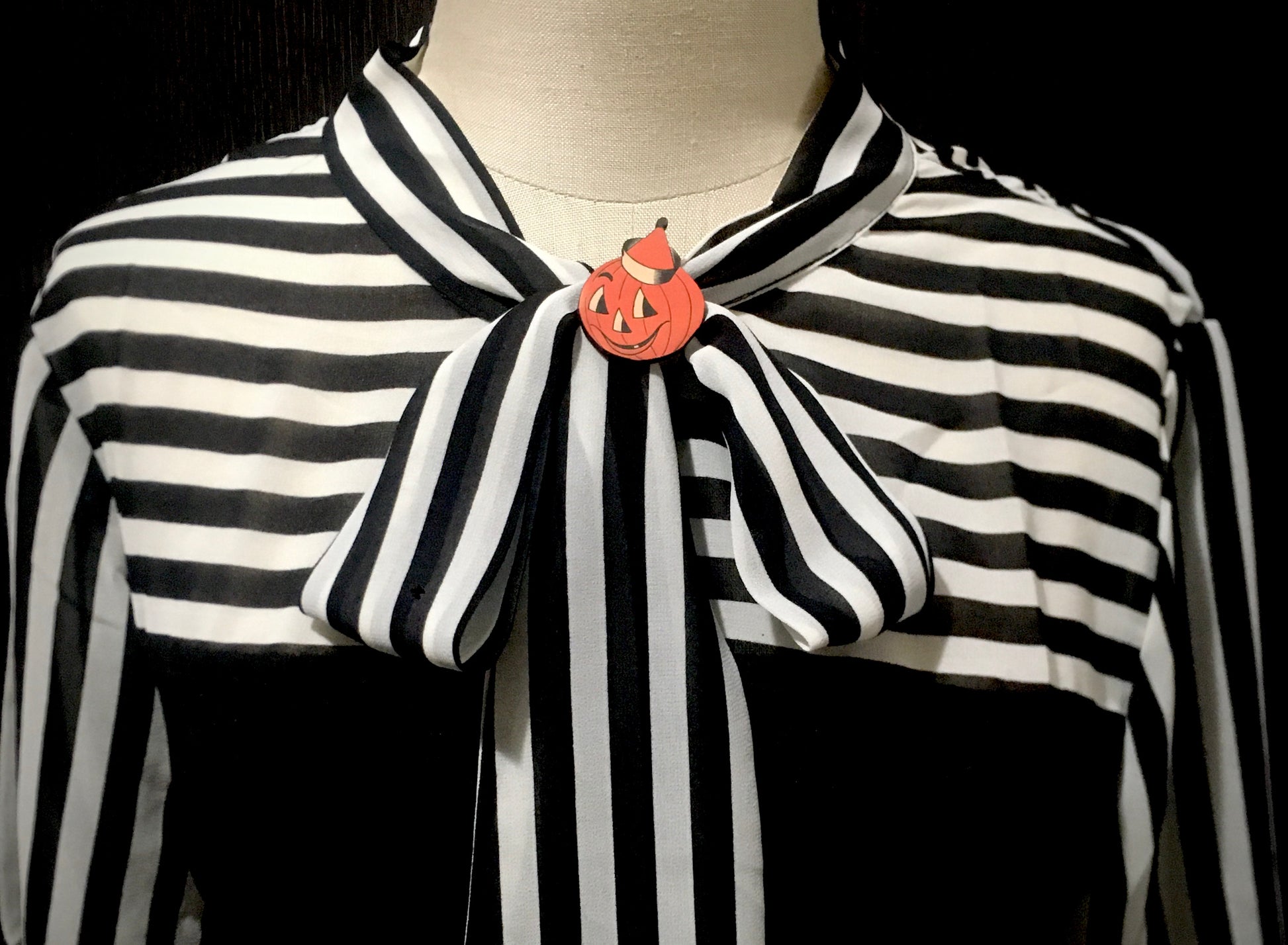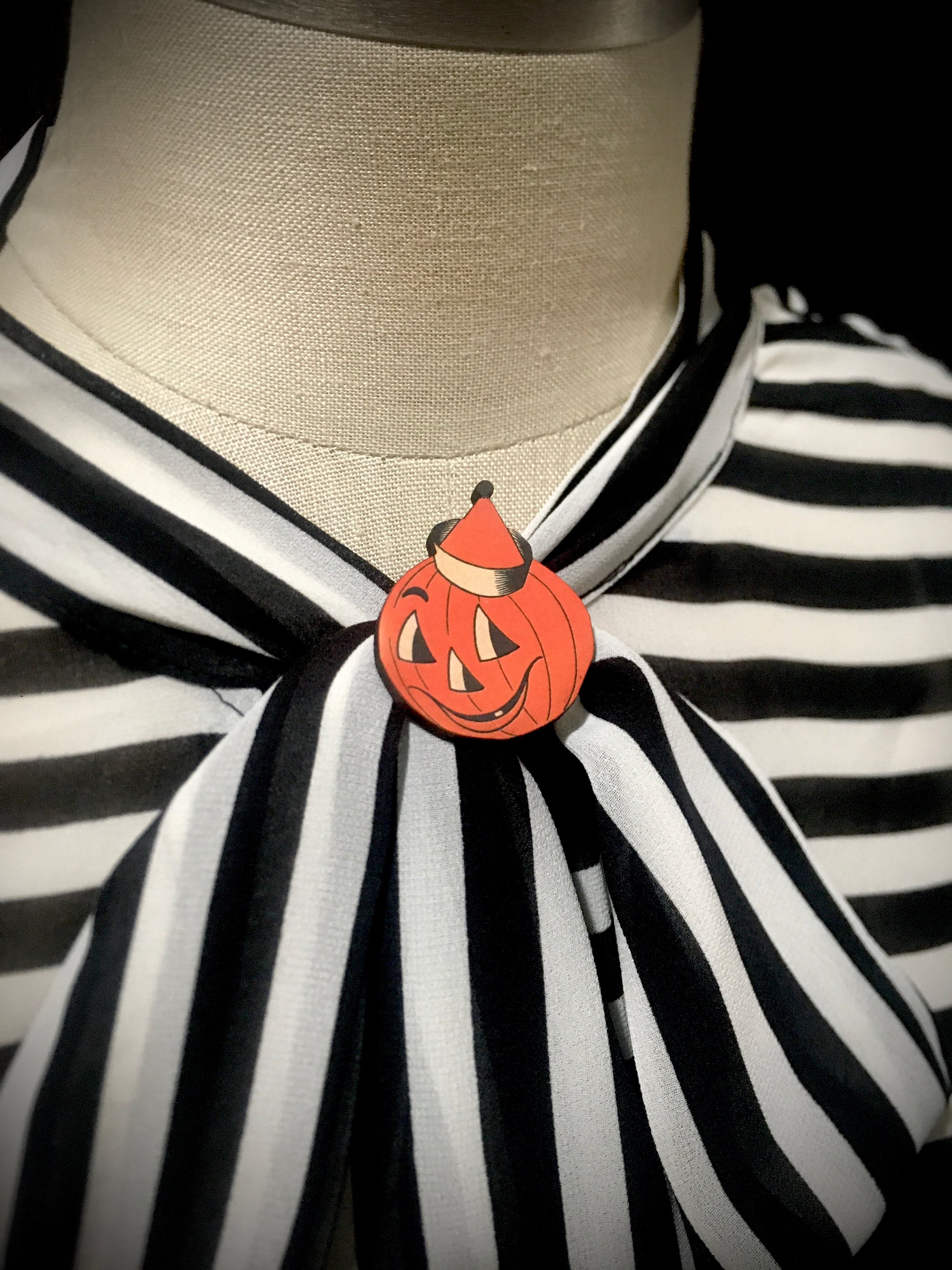 A vintage style Jack-O-Lantern Pumpkin pin,based on actual vintage paper Halloween decorations.