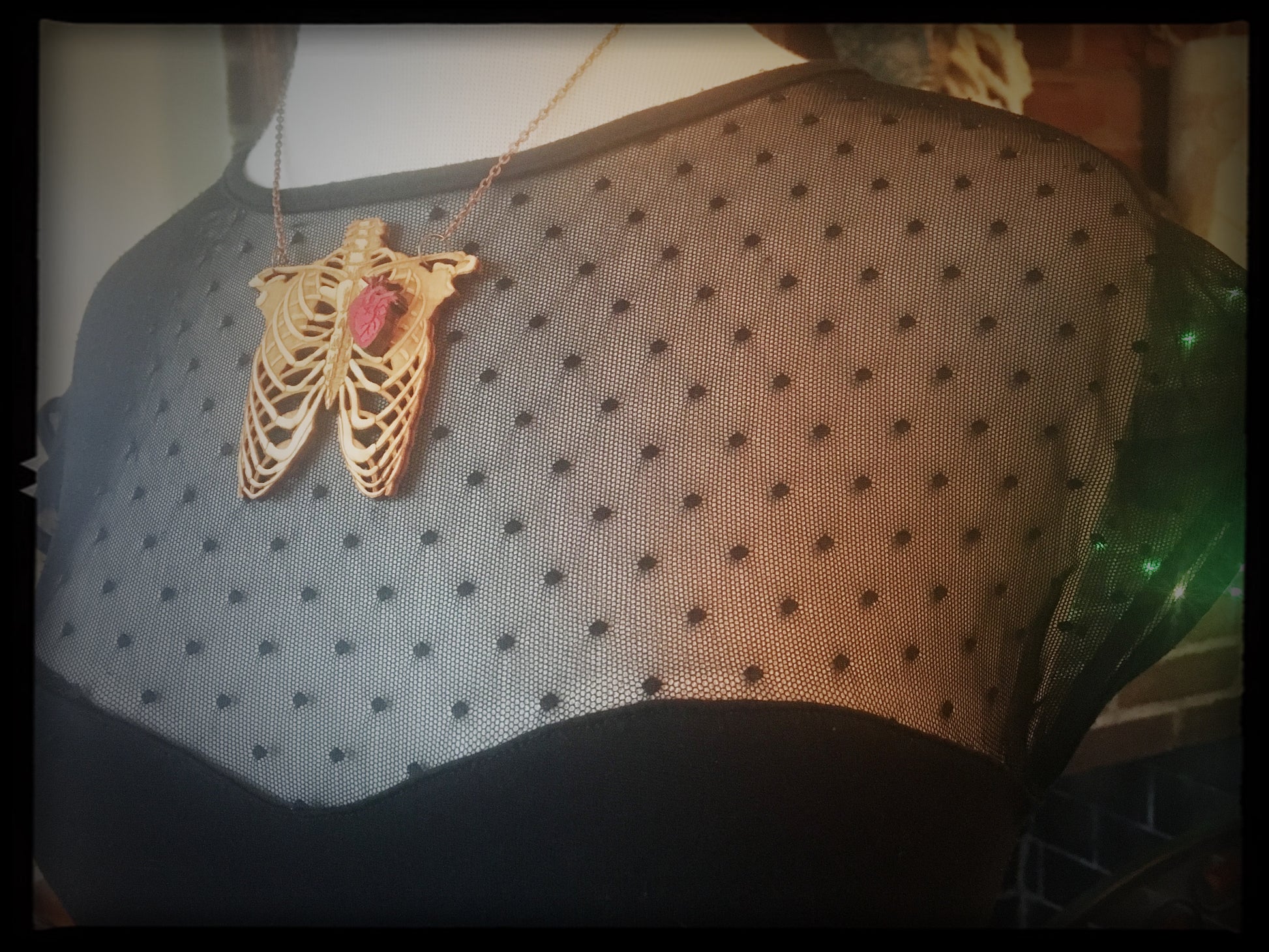Check my other listings for the smaller size rib cage necklace, sweater pin set, earrings, pins and the Black hand painted Rib Cage necklaces.