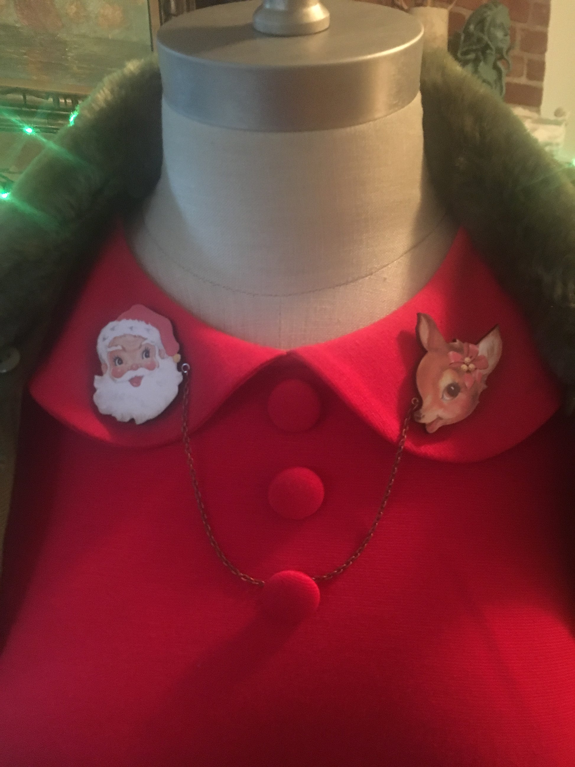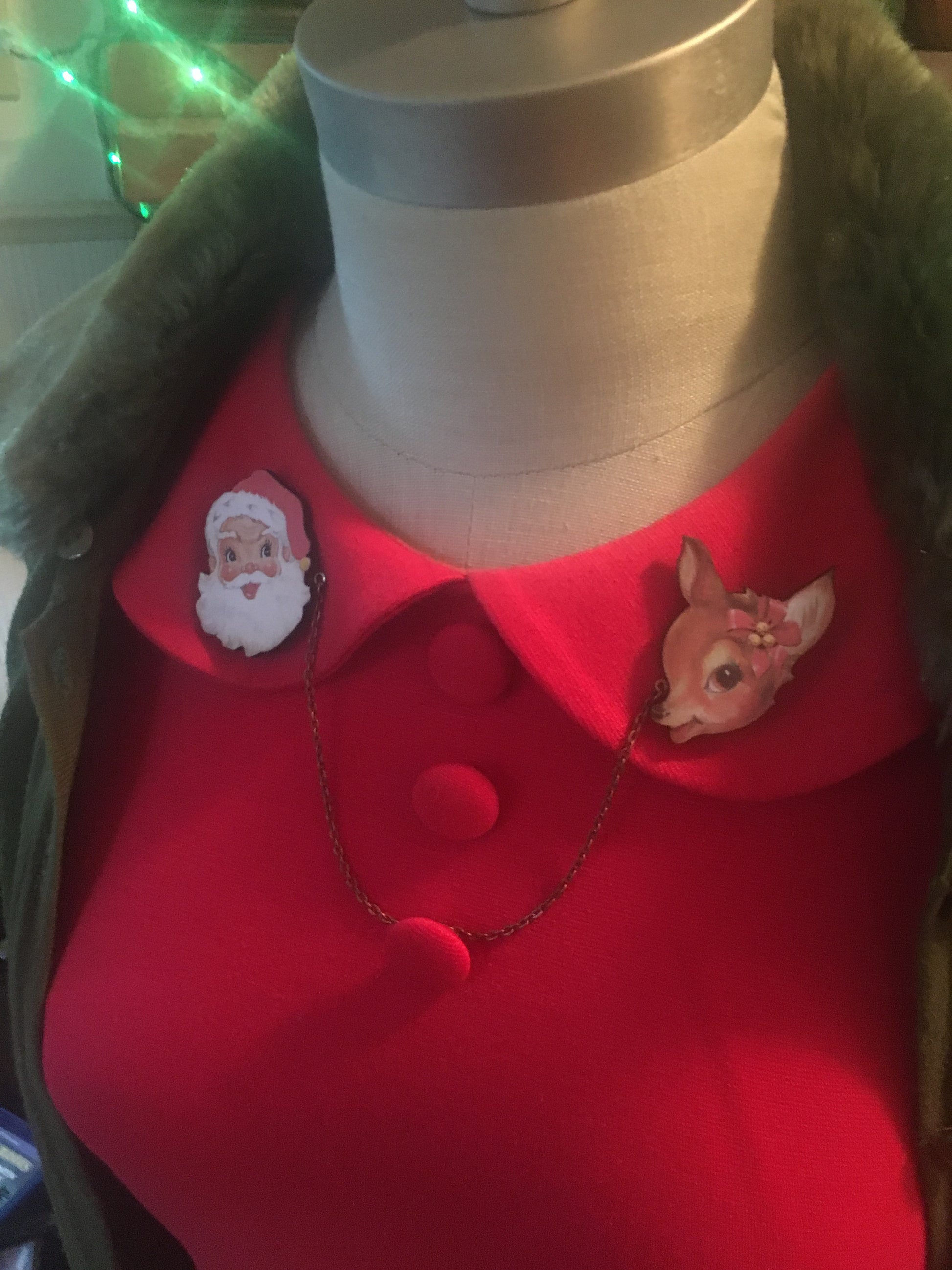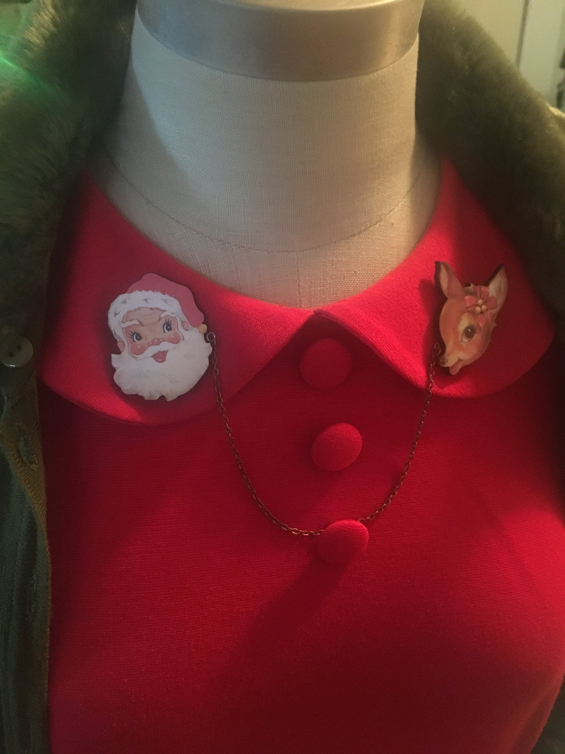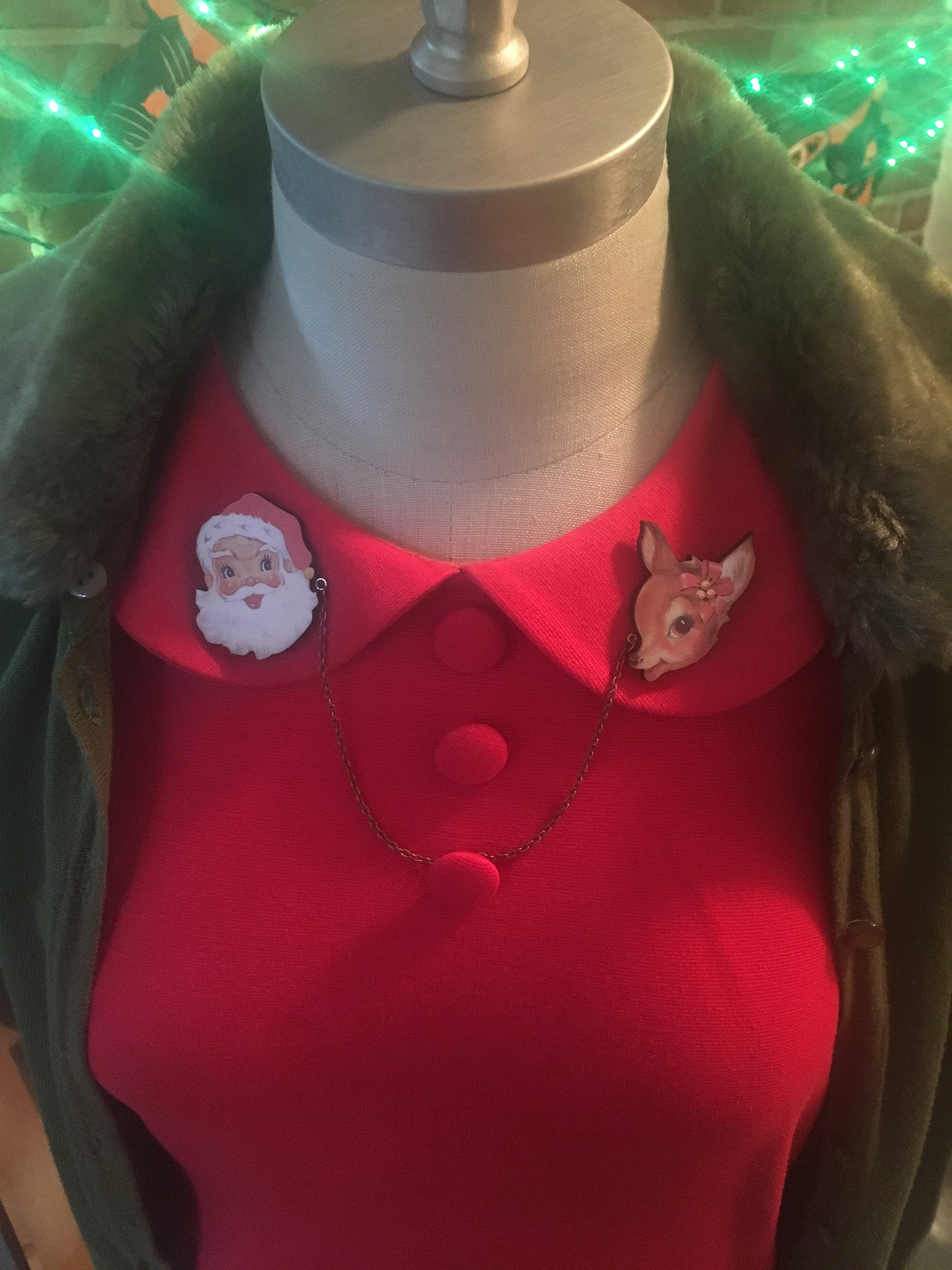 Santa & his little Reindeer -- a vintage inspired wooden collar pin set.