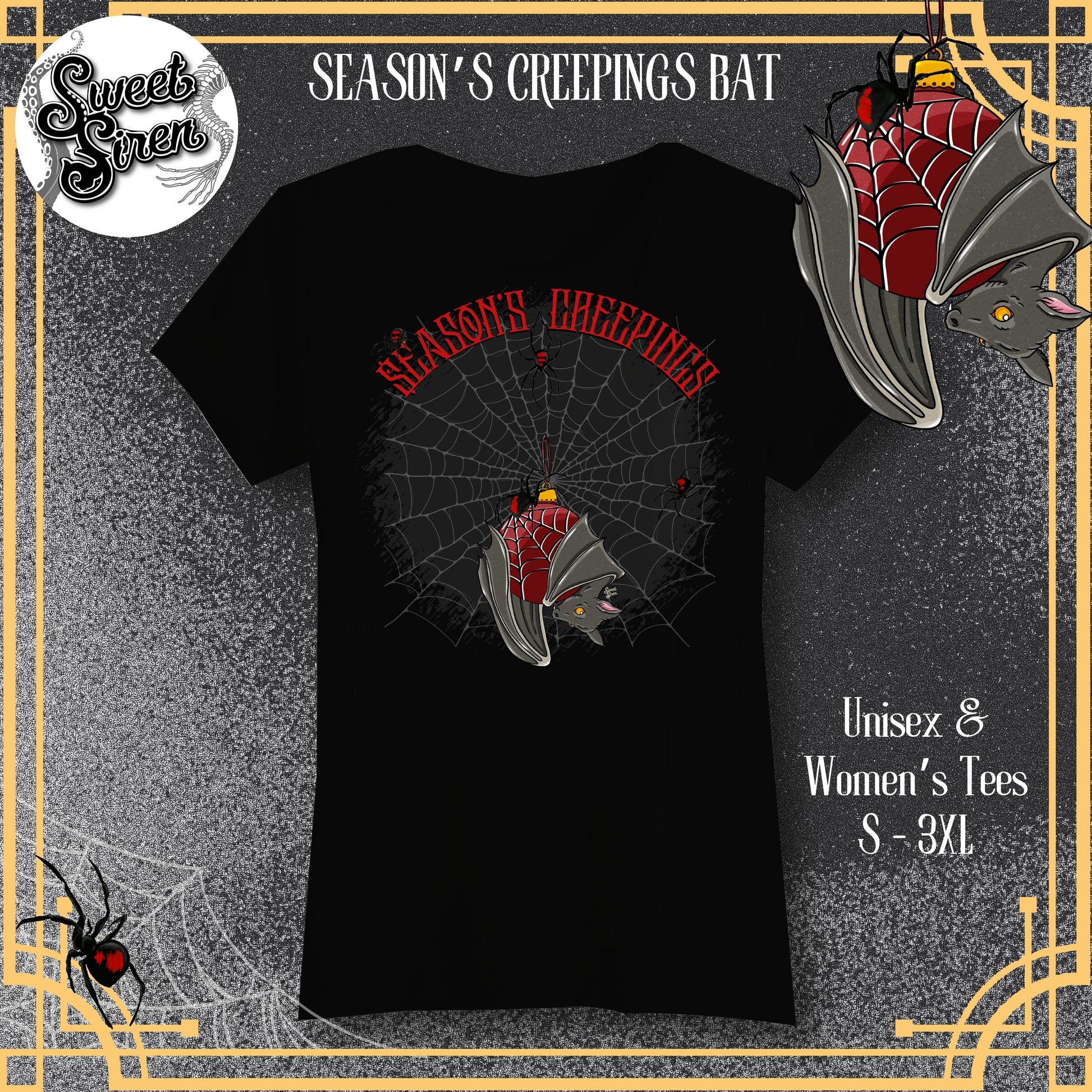 An adorable holiday bat with black widow spiders and some holiday cheer.