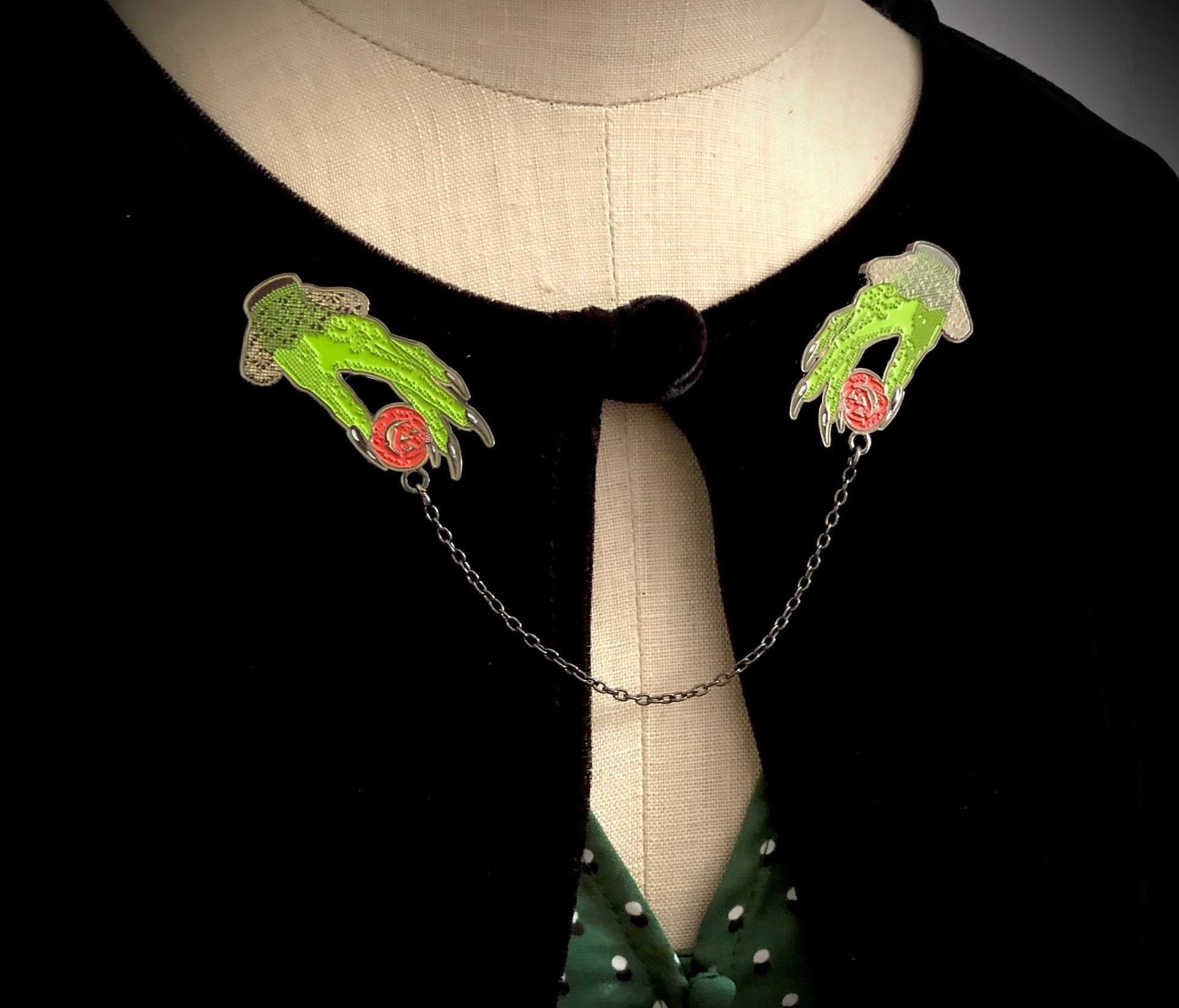 This set can be worn on your collar as pictured, or you can wear them a variety of other ways such as: sweater guard pins, jacket pins, scarf pins - on a tee -lots of options!