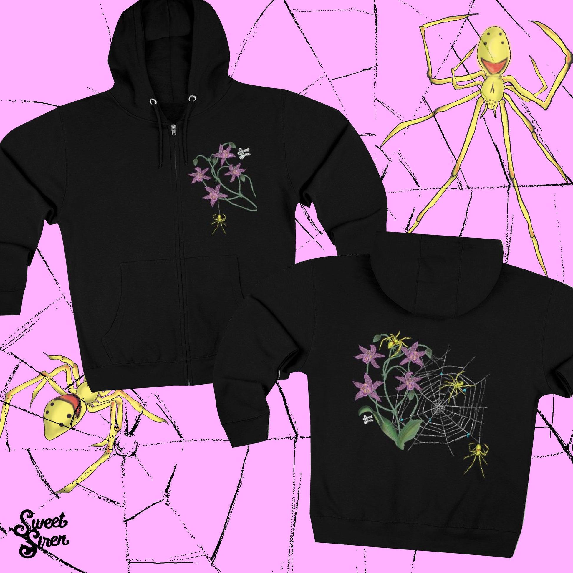 This Spider web design welcomes the season shift to Summer time, with tropical purple Orchid flowers and a bright beautiful yellow spider called the Theridion Grallator - AKA “the Hawaiian Happy Face Spider”, which as you may have guessed lives on the Hawaiian Islands.