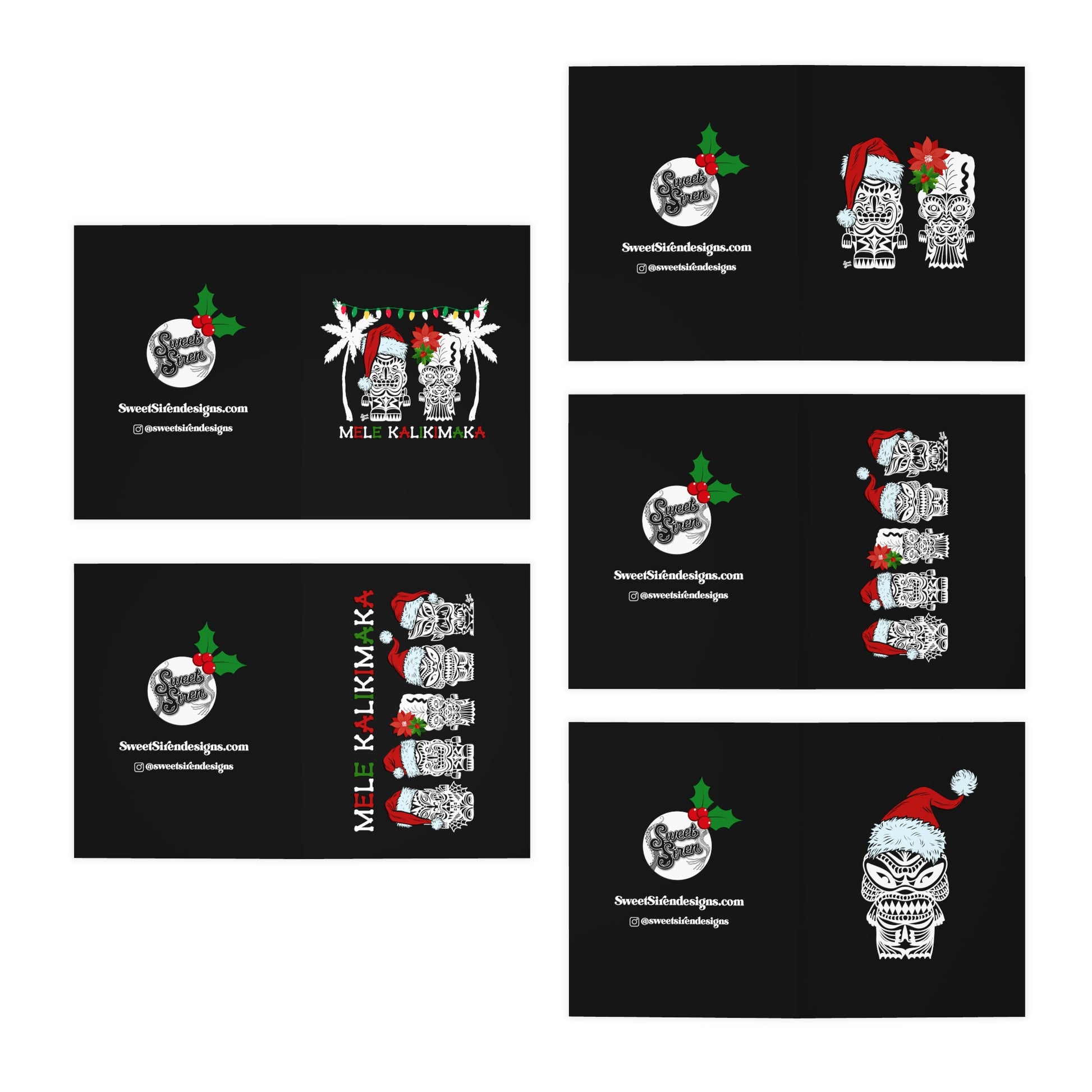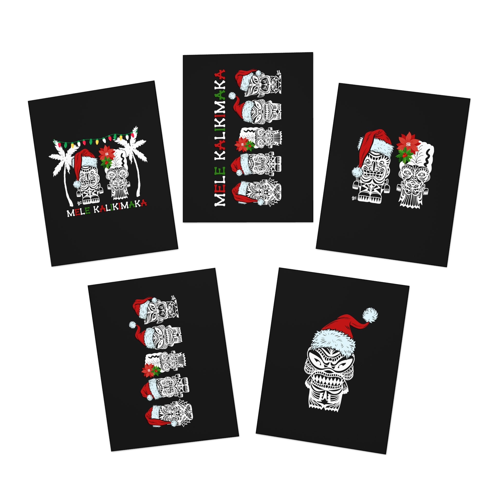 A 5 card pack of our classic Tiki Monsters in their festive Aloha Holiday wear. You'll recieve 1 of each style and envelopes for all.