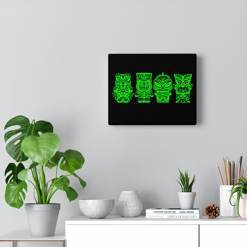 Tiki Monsters - Canvas 10"x 8" - Neon Green