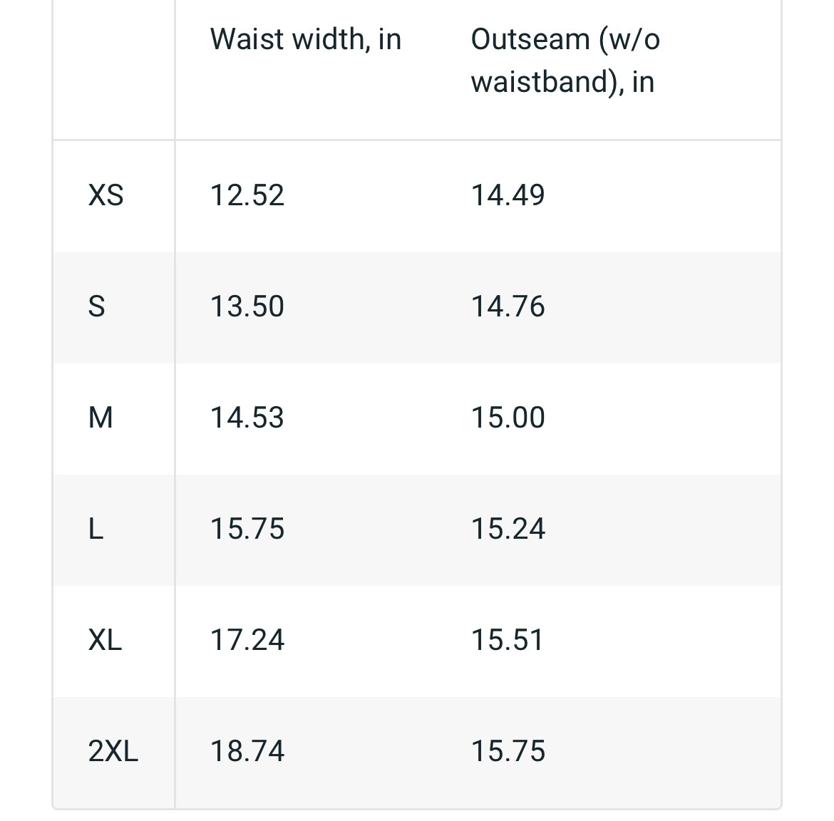 See size chart for your size.