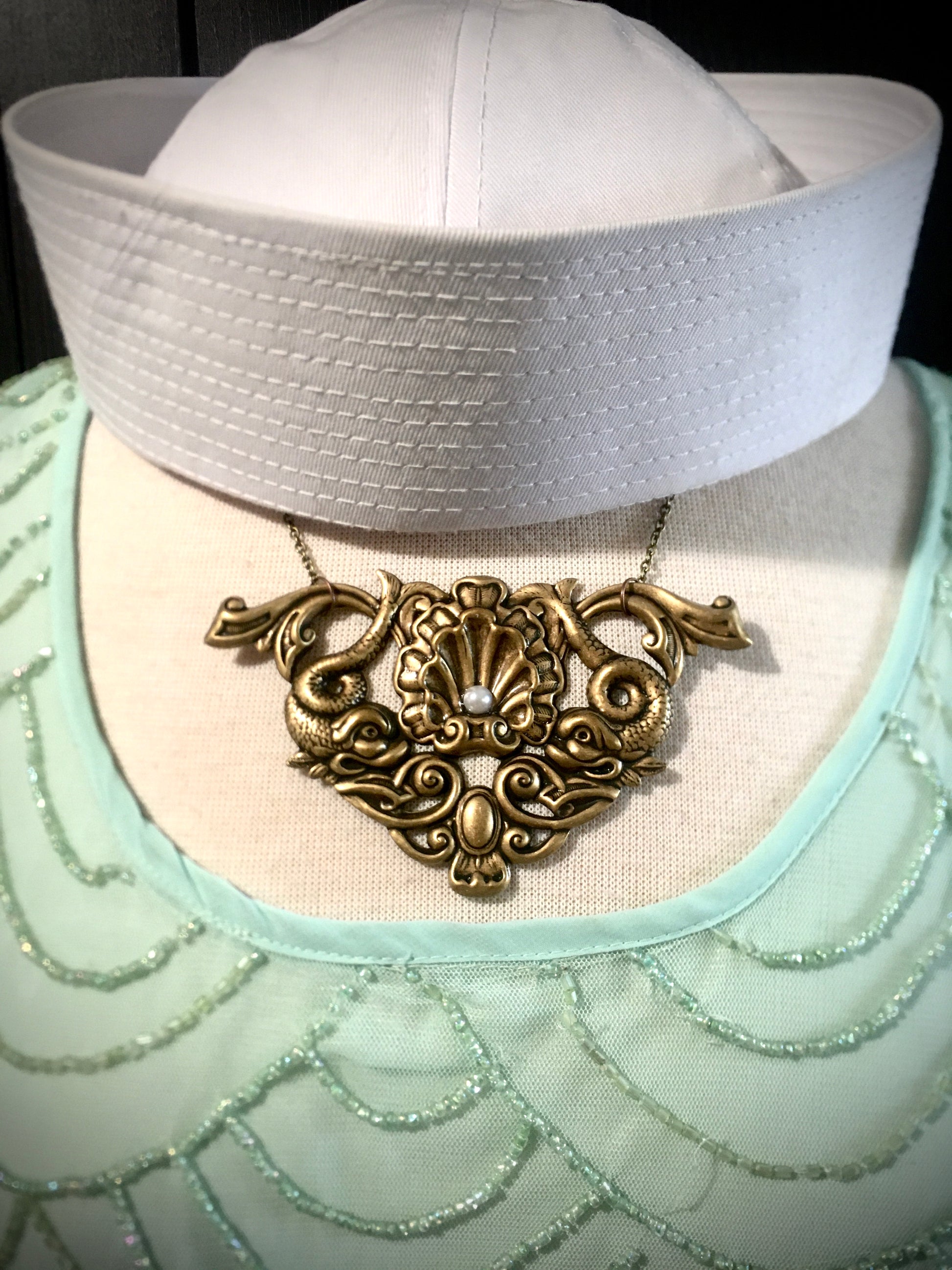 A gorgeous sea monster and shell brass plaque to adorn your most glamorous mermaid outfit.