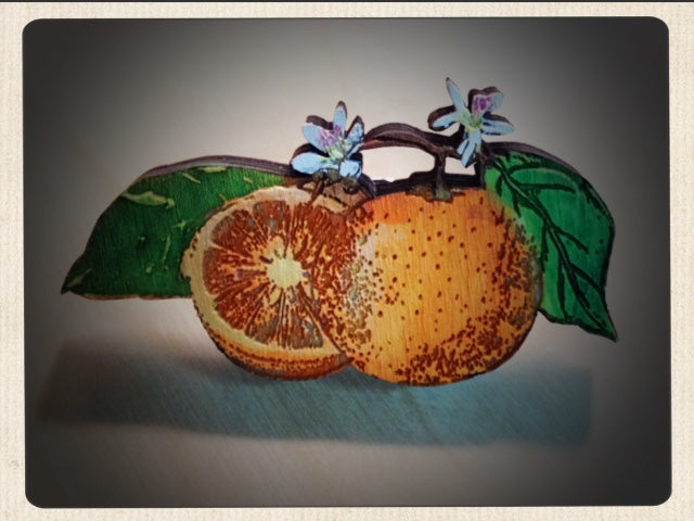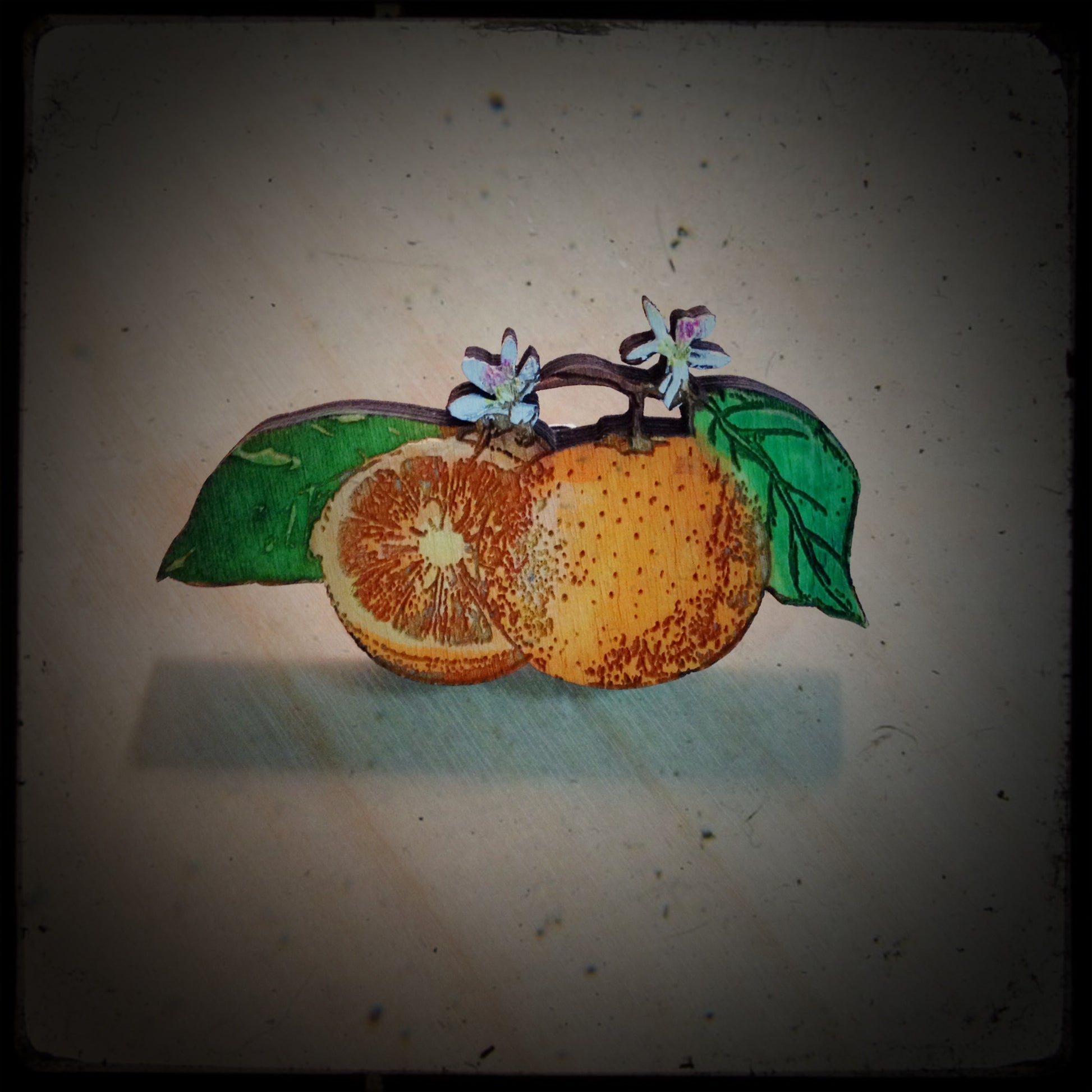 Looking for a nice unique piece of tropical flare? This vintage style orange fruit pin will style up your outfit nicely.