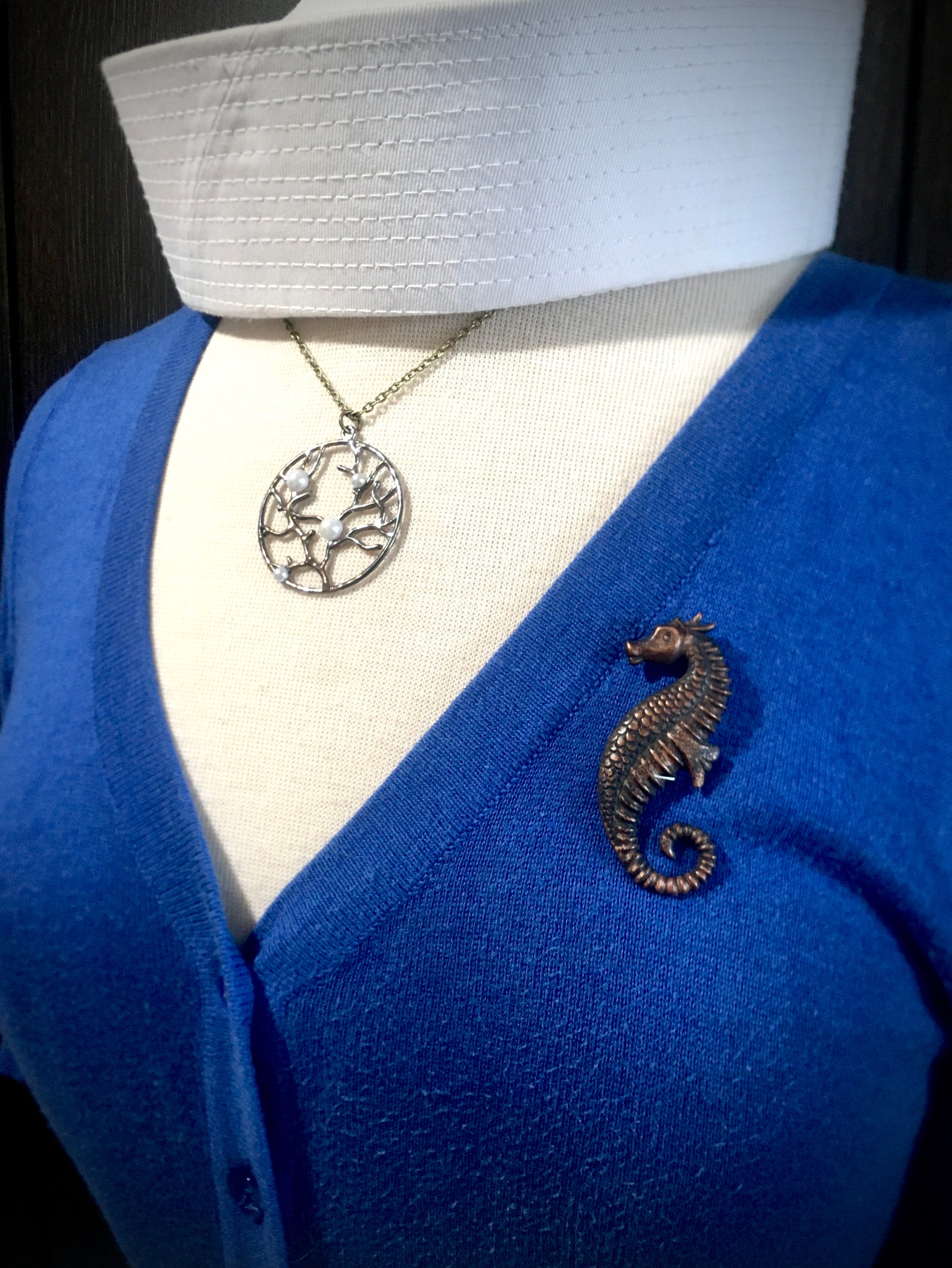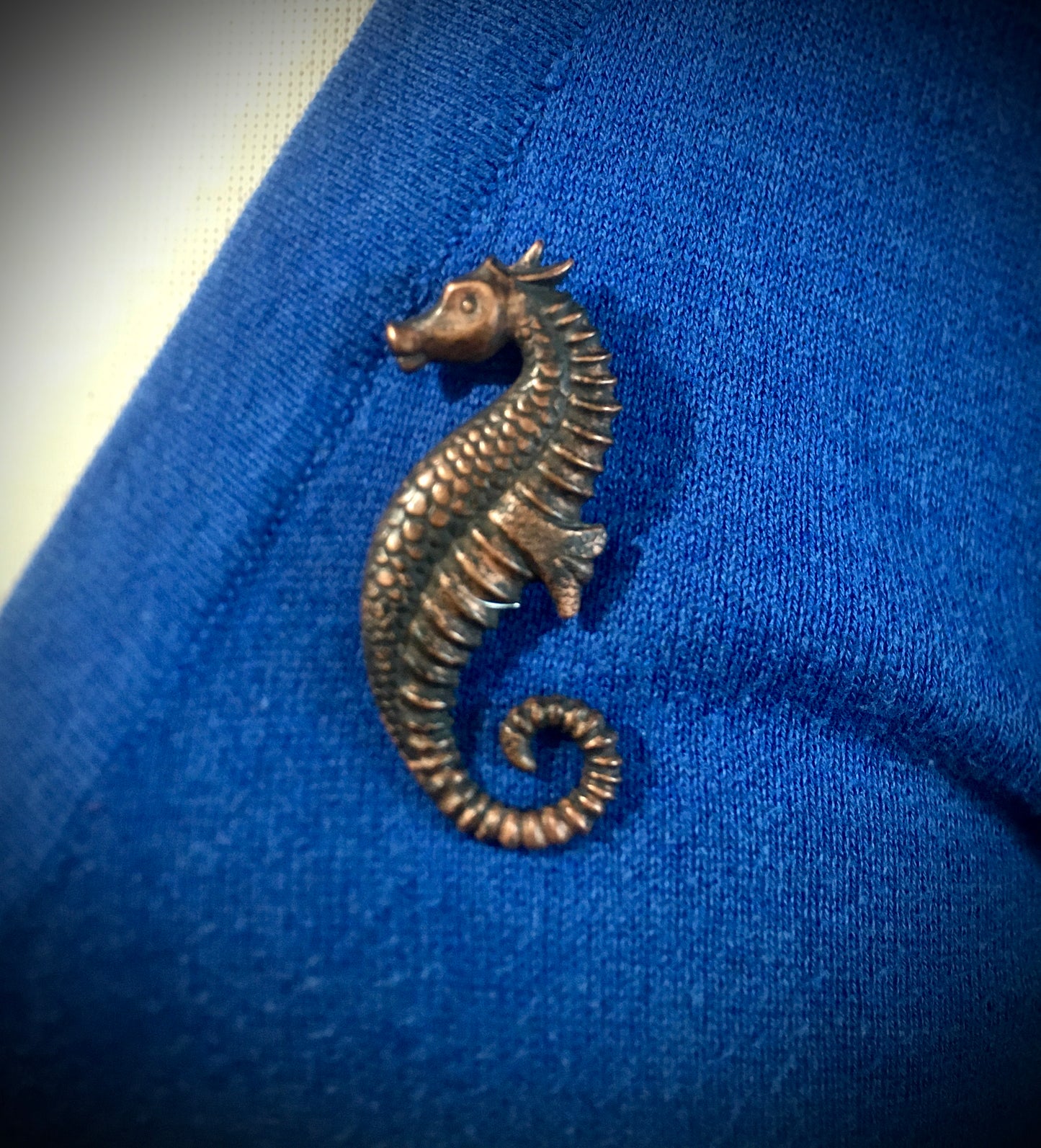 A beautiful vintage style hand antiqued brass Sea Horse pin!